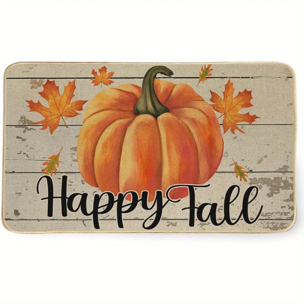 Happy Fall Decoration Doormat Outdoor Entrance Autumn Seasonal Pumpkin Rug Welcome Floor Front Door Carpet for Home Farmhouse